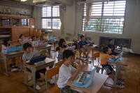 1年生が国語の授業でひらがなの「を」の練習をしました。これで、全部のひらがなを学習しました。1年生は、ひらがなを覚えたので、文章もどんどん書けるようになってきました。これからは、少しずつカタカナも学習していきます。