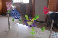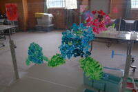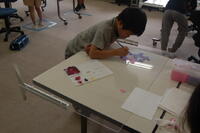 3年生図画工作科の授業の様子です。あじさいの絵を描いています。透明のクリアーボードに1つ1つ丁寧に絵の具で色をつけていきます。青のあじさい、赤のあじさい、紫のあじさいなどとてもカラフルに作品を作っています。完成するのが今から楽しみです。