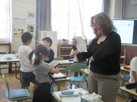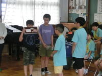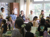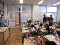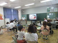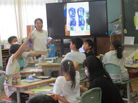 3~6年生は、台湾の人たちと一緒に授業を行いました。絵本に出てくる言葉を英語で確認し、その後台湾の言葉を教えてもらいました。子供たちは覚えが早く、たくさん褒めてもらいました。台湾の人たちの「台北101の耐震構造」の説明やリコーダー演奏を聞きました。とても興味深かったです。