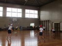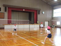 5,6年生の体育「バドミントン」です。ラケットで思い通りにシャトルを打つのに苦労しています。しかし、ラリーを続けるために、相手がとりやすいように打つにはどうしたら良いか考えることで、少しずつ上達しました。相手のことを考えることが大切ですね!