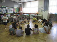 1~6年生が一緒に活動するなかよし遊びと清掃がありました。遊びは、外遊びができないことを見通して、いす取りゲームやハンカチ落としなど計画し遊びました。直前までの雨が上がり、なかよし清掃として花壇をきれいにしました。さすが、高学年!低学年の様子に気を配り、活動ができました。