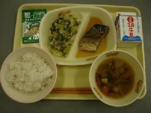*牛乳*麦入りご飯*さばの煮付け*きゅうりのごま炒め*けんちん汁*のりふりかけ