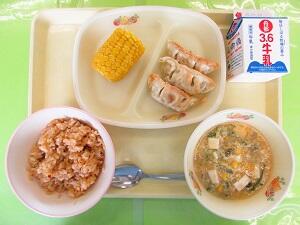 *牛乳*キムチチャーハン*焼き餃子*中華コーンスープ*坂小のとうもろこし