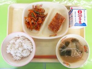 *牛乳*麦入りご飯*松風焼き*にんじんのきんぴら*みそ汁
