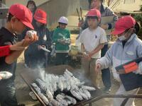 2年生生活科の授業です。自分たちが育てたサツマイモをつかって焼き芋を作り、お礼の手紙と一緒にわたしに行きます。焼きいもづくりは初めての人が多く、熱くなった炭にサツマイモを入れるのを怖がっていました。1つ入れると安心したのか、続けて入れ、焼ける様子を観察し、記録をタブレットにつけました。