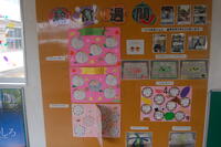 子どもたちが書いてくれたお手紙はきれいに掲示ました。感謝の気もちがたくさん書いてあるお手紙の内容だったり、手作りの台ふきんはとてもステキです。