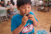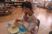 給食週間2日目。今日のメニューで「おむすび」「やきのり」「さけのしおこうじやき」「たくあん」「ぐだくさんじる」「ぎゅうにゅう」でした。とくに「おむすび」は自分でのりを巻いたり、さけやたくあんの具をおむすびに入れたりして、オリジナルおむすびを作って楽しみました。どの子もおいしそうにおむすびを頬張る姿がとてもかわいらしかったです。明日の給食もまた楽しみです。