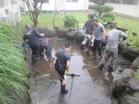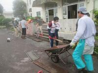 ほかに外では、側溝の土砂処理、雑草の伐採等を行いました。特に側溝の掃除は、普段なかなか行うことができません。側溝の蓋を外し、中の土砂や落ち葉をスコップで取り除いてもらいました。力仕事となりましたが、側溝を速攻できれいにしてくれました。