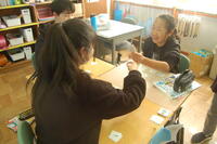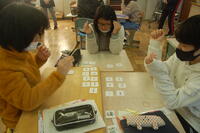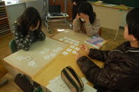6年生外国語の授業の様子です。職業カルタを行いました。職業の名前を英語で言って、その職業のカードを取ります。よく発音を聞いていないと取ることができません。グループごとに競い合いました。発音を聞いて、一斉にカードを取り、カードを取ることができた子は、すごく嬉しそうでした。