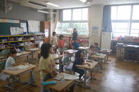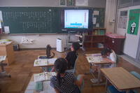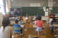2年生国語の授業の様子です。「夏といえば・・」ということで、子どもたちがいろいろな言葉を想像しました。「すいか」「かき氷」「アイス」などの冷たい食べ物や「海」「夏休み」「花火」「せみ」「カブトムシ」「プール」などの遊びや生き物について、「えだまめ」「きゅうり」「ミニトマト」「なす」など、生活科で育てている野菜などもたくさん出てきました。その後、みんなが出してくれた意見でビンゴをして楽しみました。