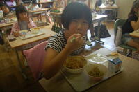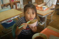 今日の給食に坂小学校の農園で収穫したじゃがいもを使った、「のりしおポテト」が出ました。子どもたちが大好きなポテト、カリッとした食感で食欲がどんどん出てきます。ほどよい塩加減も最高です。子どもたちは、「すごきおいしい~」と、とても嬉しそうにポテトを食べていました。