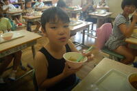 野菜大臣である4年生が、朝の時間を使って、今日の給食で使うとうもろこしの収穫をしてくれました。収穫する量は、全部で30本です。坂っ子農園に行き、おいしいとうもろこしの見分け方を教えてもらい、収穫しました。「これがいいかな?」「太くて大きいとうもろこしが収穫できたよ」などあっという間に収穫することができました。