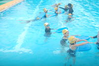 1・2年生体育の授業の様子です。最後のプールの授業だったので、伏し浮きやけのび、バタ足などこれまでに練習してきた成果を確認しました。10秒間もぐってみたり、けのびで5メートル進んでみたりとどの子もがんばっていました。最後に少し、自由時間があり、子どもたちは友達と楽しんでいました。