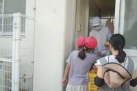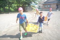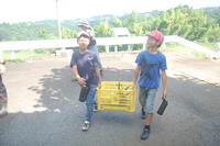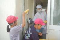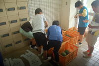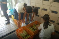 坂小学校の農園で収穫したスイカとうもろこしを全校児童が持ち帰りをしました。今回は、スイカが57個、とうもろこしが70個収穫することができたので、スイカは各家庭に1個、とうもろこしは、一人1個持ち帰りました。2回目のスイカととうもろこしの持ち帰りに、子どもたちは嬉しそうでした。