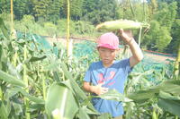 花丸 野菜大臣、給食のとうもろこしの収穫!!(4年生)