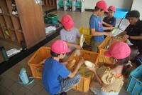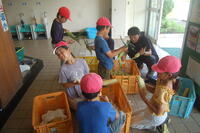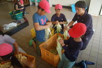 収穫したとうもろこしは、学校に持って帰り、皮むきをしました。黄色のきれいな実が詰まったとうもろこしでした。30本よりも少し多めに皮むきをして、給食の調理員さんに届けるところまでがんばってくれました。