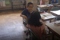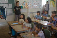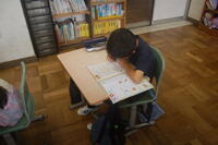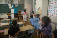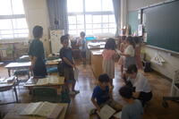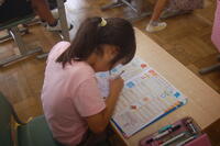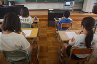 3年生は、ローマ字の練習をしました。今回は、「や・ゆ・よ」のつく音のローマ字の練習をしました。「kya(きゃ)」、「kyu(きゅ)」、「kyo(きょ)」、 「sya(しゃ)」、「syu(しゅ)」、「syo(しょ)」、「tya(ちゃ)」、「tyu(ちゅ)」、「tyo(ちょ)」 など小さい音がつく言葉は難しいなとつぶやきながら、一生懸命に書いて覚えていました。
