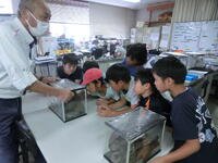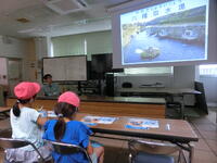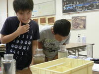 浄化センターでは、昔の源兵衛川や柿田川が汚染されている映像を見たり、汚れた水がきれいになる過程を見せていただいたりしました。実際に汚れた水やきれいになった水を見たり、においを嗅いだりして、微生物の分解の力に驚いている子もいました。家でできる、水を汚さないための取り組みも教えてもらいました。