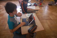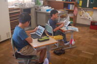 4年生社会科の授業の様子です。先週の金曜日に「三島めぐり」に行ってきたので、その見学先である「中島浄水場」「浄化センター」、「清掃センター」について実際に自分で見てきたことや説明で聞いてきたことなどを新聞にまとめていました。タブレット型端末を上手に活用しながら、記事を書いたり、写真を貼り付けたりしながら新聞作りに一生懸命でした。