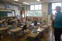 「絵本のまち三島」事業の1つとして「めんぼーくんによる絵本の読み聞かせ」を市で行っています。第4校時に1年生の教室にめんぼーくんがやって来ました。自己紹介から笑いがおきています。めんぼーくんの読み聞かせが始まると、どんどん子どもたちはめんぼーくんの世界に引き込まれていきました。子どもたちのやりとりの中でも「拍手」をたくさんする場面を作ってくれました。拍手をすると、「発表した子が、嬉しい気持ちになる」「脳が元気になる」「教室が明るい雰囲気になる」とお話ししてくれました。子どもたちの笑顔が絶えない読み聞かせとなりました。めんぼーくん、楽しい絵本の読み聞かせ、ありがとうございました。