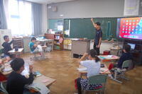 1年生算数の授業の様子です。たし算カードを使って、たし算の練習をしました。カードがたくさんあるので、全てのカードが終わる時間がどのくらいかかるのかタイマーで計りました。先生のよいスタートの合図と共に、一斉に計算を始めました。これからもお家で練習がんばります。