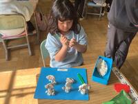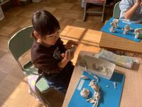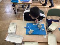 1年生図画工作「いっしょに おさんぽ」の授業の様子です。粘土を使って、立体作品を作りました。最初に自分を作った後、だれといっしょにおさんぽしようか、出かけようかを考えて作品を作りました。動物を作ったり、自分の好きなキャラクターを作ったりと楽しいお散歩が想像できるような作品に仕上げていました。