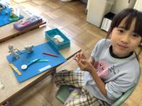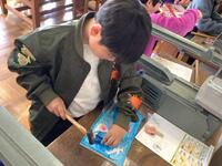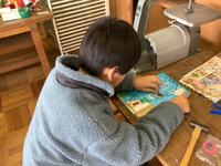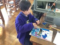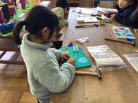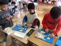 3年生図画工作「くぎうちトントン」の授業の様子です。釘を打つのが、だんだんと上手になってきています。ボードに釘を打つ量も増えました。釘と釘の間にゴムをつけて、ビー玉の通り道を作っていました。オリジナルのコリントゲームの作成に子どもたちは、一生懸命取り組んでいました。