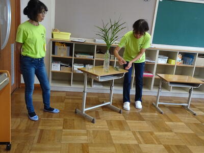 授業で使っていて入れなかった教室もありましたが、2年生はしっかりと1年生に教えることができ、また、1年生はちゃんと話を聞きながら、一緒に探検ができました。