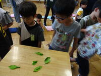 第2部は、アゲハチョウやクロコノマチョウの幼虫を観察しました。鳥に食べられないようにする工夫も教えてもらいました。
