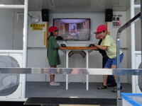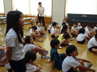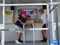 震度7の地震を30秒間体験しました。想像以上に揺れてびっくりしている子が多かったです。起震車はつかまる所がありますが、実際に地震が起きたとき、つかまるところがない可能性もあります。普段から、家の中の家具や電化製品を固定しておく大切さも感じることができました。