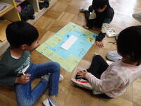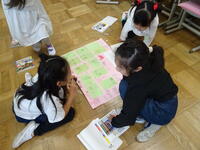 今日は4の段のかけ算について考えていました。生活科のかべ新聞も完成したようです。