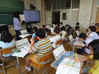 リコーダーで「陽気な船長」を演奏します。指遣いを先生に聞いたり、自分で何度も演奏したりして、練習を重ねていました。