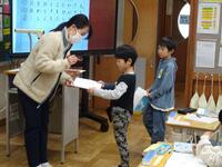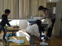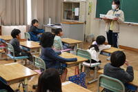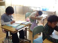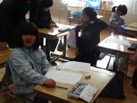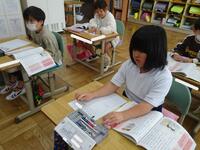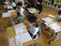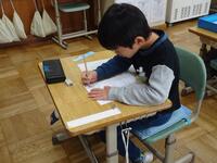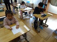 会話の入った文を「 」かぎかっこを使って表記する方法を学習していました。「「 」を付ける時は行をかえるんだよ」とアドバイスをもらっていました。