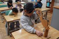 道具を慎重に使ってどんぐりに穴を開け、その後楊枝をさしてできあがります。