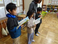どんぐり拾いの後は、「あき見つけビンゴ」をしました。菊の花、タチバナ、黄色い葉など、秋をたくさん見付けることができました。