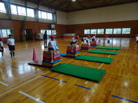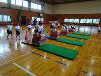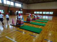 跳び箱を使って、うでで体を支えたり、跳び越えたりする運動を行っていました。体の使い方が上手くなると良いですね。