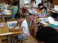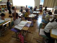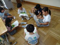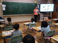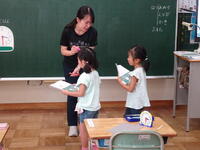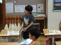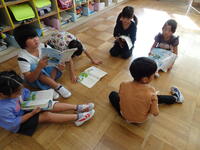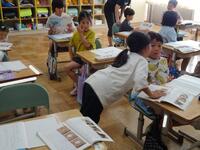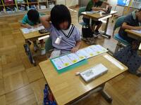 「やくそく」というお話を音読していました。グループに分かれて、タイミングを合わせながら音読できました。