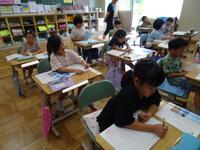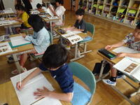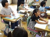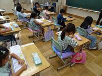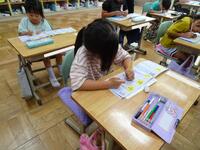 ひらがなやカタカナの練習をしていた1年生が、漢字の学習をしていました。今日は「子・空・先」です。ドリルをしっかりなぞって、書き順を覚えていました。