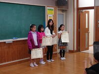 本日、お子様一人ひとりに通知表を渡しました。ぜひ、お子様の努力を認めていただき、大いに褒めていただきますよう、よろしくお願いいたします。