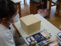 箱に穴を開けたり、切り取ったりしながら作品を仕上げていきます。