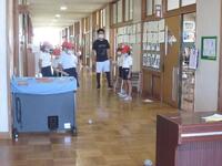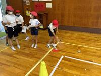 3,4年生が体育の時間に、さのっ子ゴルフに挑戦しました。新聞紙を使ってクラブとボールを作り、カップを目指して進めていきます。体育館や教室、廊下などにコースを設置し、楽しく取り組んでいました。