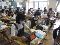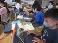 いろいろな立場から意見が出せるか、前より考えが深まる内容かなどの視点をもって、資料を集めていきます。タブレット端末を活用しながら、より多角的で多面的な考えをもてるよう学習に取り組んでいます。