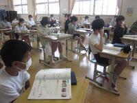 6年生は、算数の練習問題に取り組んでいました。学習したことを定着させるためにも、練習問題を解いて、できているかを確認しました。集中して取り組む姿は、みんなのお手本になりますね。