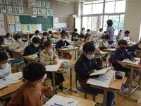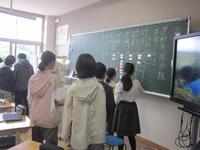 代表者が順番で進めていく新出漢字の学習法も、すっかり定着した6年生です。書き順や読み方の確認を、順序よく進めていきます。