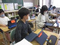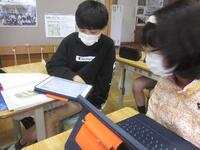 今日は、新出漢字の練習後に、「誓約書」を読み進めました。登場人物の関係について、2の場面を中心に探していきました。わかったことは、隣の席の友達と一緒に確認していきます。タブレット端末にメモしたことを見ながら、互いに読みを深めていきました。