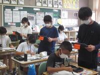 今日は、タブレット端末を活用し、動画の撮影をしました。ペアの友達に筆の動かし方が分かるように撮影してもらいます。
