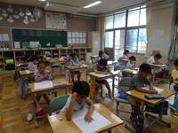 2年生の算数です。引き算の練習をプリントを使って行いました。