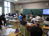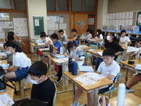 6年生は社会のテストについて解説を聞きながら、見直しを行いました。