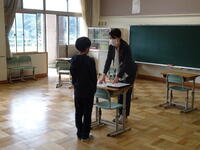「学校生活のあらわれ」(通知表)を一人ひとりに担任から手渡されました。1学期頑張ったことや2学期に向けての話をしながら渡していました。
