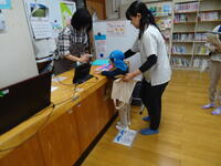 佐野保育園のみなさんが、図書室に本を借りに来ました。